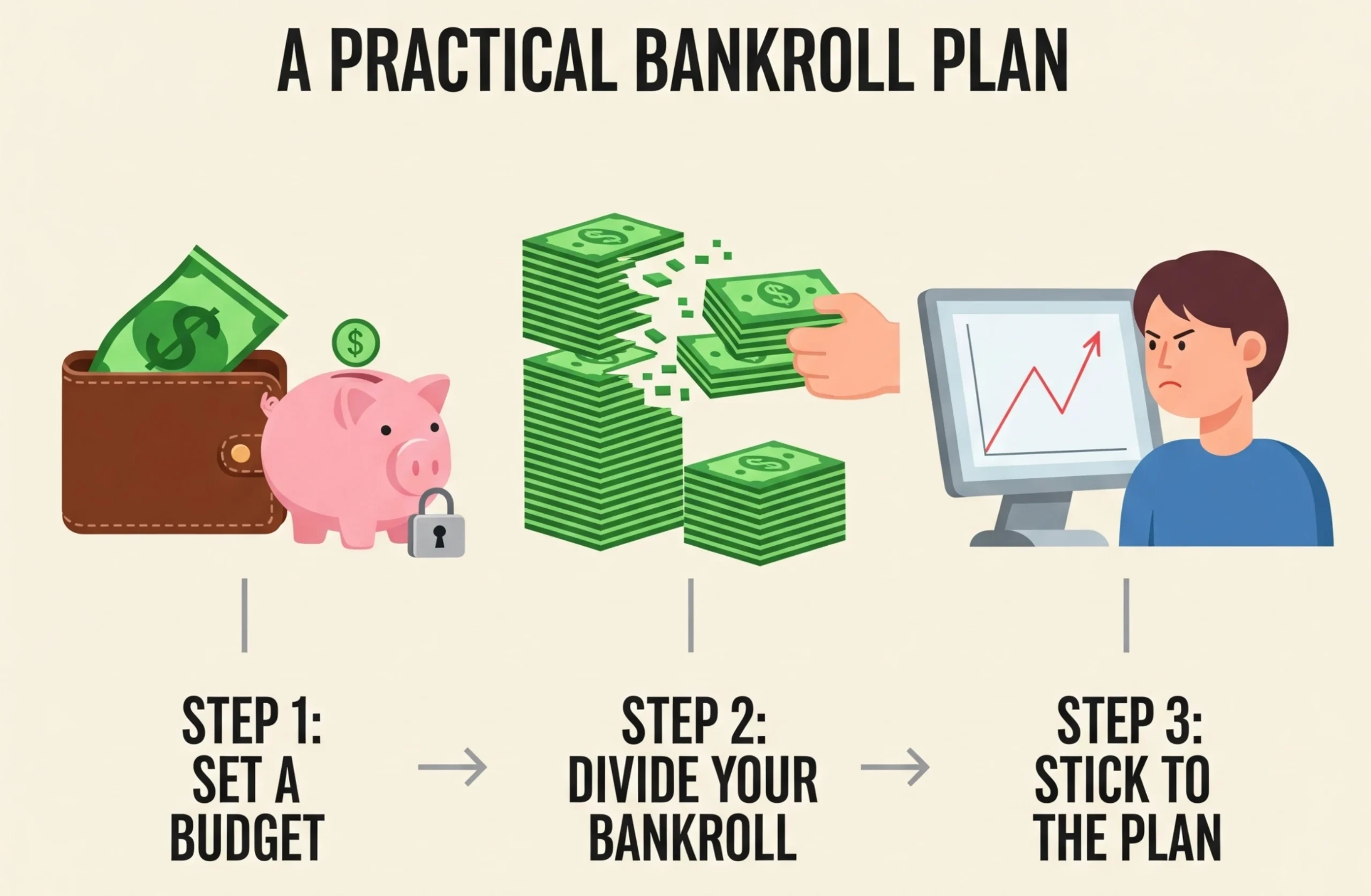 - กำหนดเกณฑ์การลงทุนสูงสุดต่อวัน ไม่เกิน 3–5% ของ bankroll ต่อการซื้อแต่ละครั้ง