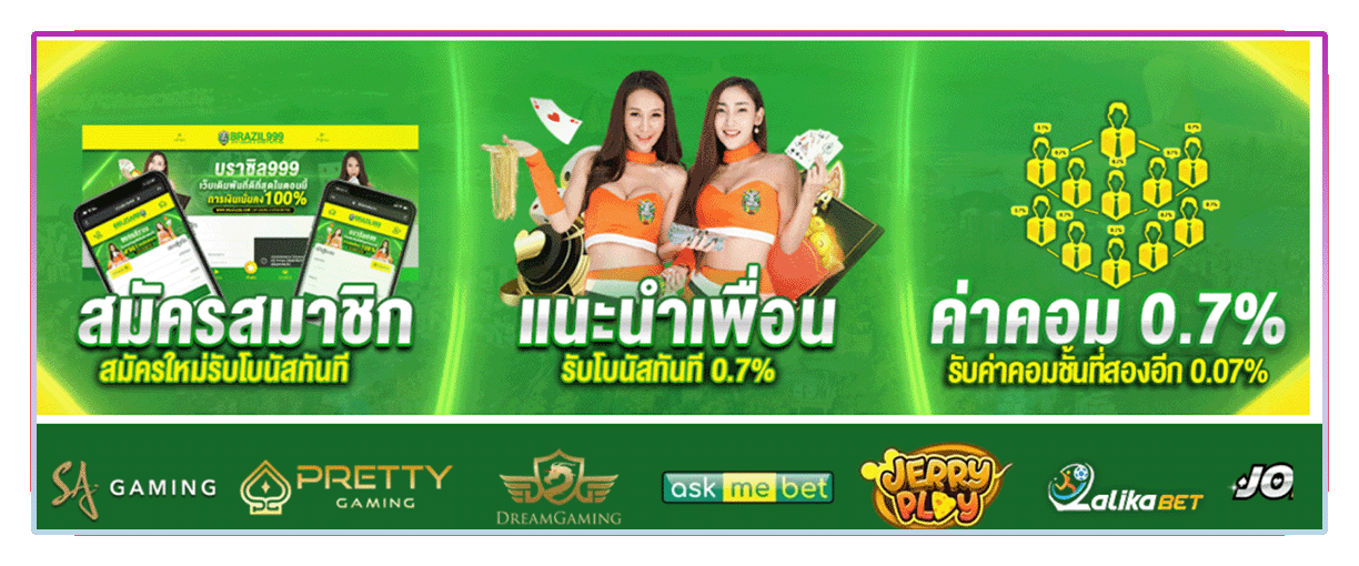 นอกจากบริการที่เล่นได้อย่างสนุกที่ brazil999 เป็นศูนย์รวมความบันเทิงครบวงจรที่ตอบโจทย์นักเดิมพันทุกประเภท ด้วยการบริการระดับมืออาชีพ นอกจากนี้ยังมีโปรโฒชั่นและสิทธิพิเศษมากมาย ทั้งการสมัครสมาชิกไปจนถึงการแนะนำเพื่อนเพื่อรับค่าคอมมมิชชั่น