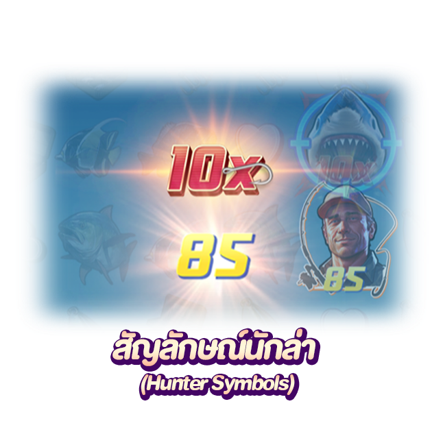 สัญลักษณ์นักล่าจะปรากฏขึ้นแบบสุ่มในการหมุนใด ๆ ในเกมหลัก มูลค่าของสัญลักษณ์นักล่าจะเท่ากับจำนวนเงินเดิมพันปัจจุบัน หากในการหมุนใด ๆ คุณมีสัญลักษณ์นักล่าและสัญลักษณ์ฉลามบนวงล้อ การชนะจะถูกคำนวณโดยการคูณมูลค่ารวมของสัญลักษณ์นักล่ากับมูลค่ารวมของสัญลักษณ์ฉลาม