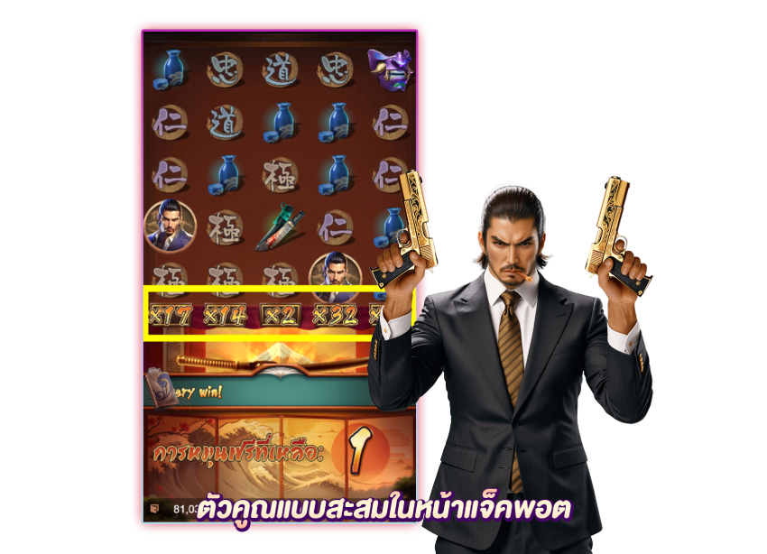 แต่ละรอบของฟรีสปิน ผู้เล่นจะได้สะสม ตัวคูณพิเศษ เพื่อเพิ่มมูลค่าการจ่ายรางวัล ยิ่งปรากฏ สัญลักษณ์ยากูซ่า พร้อมตัวคูณ x5 มากเท่าไหร่ การสะสมตัวคูณก็จะรวดเร็วและสูงขึ้นตามไปด้วย ทำให้ทุกการหมุนฟรีมีโอกาสสร้างผลตอบแทนสุดคุ้ม